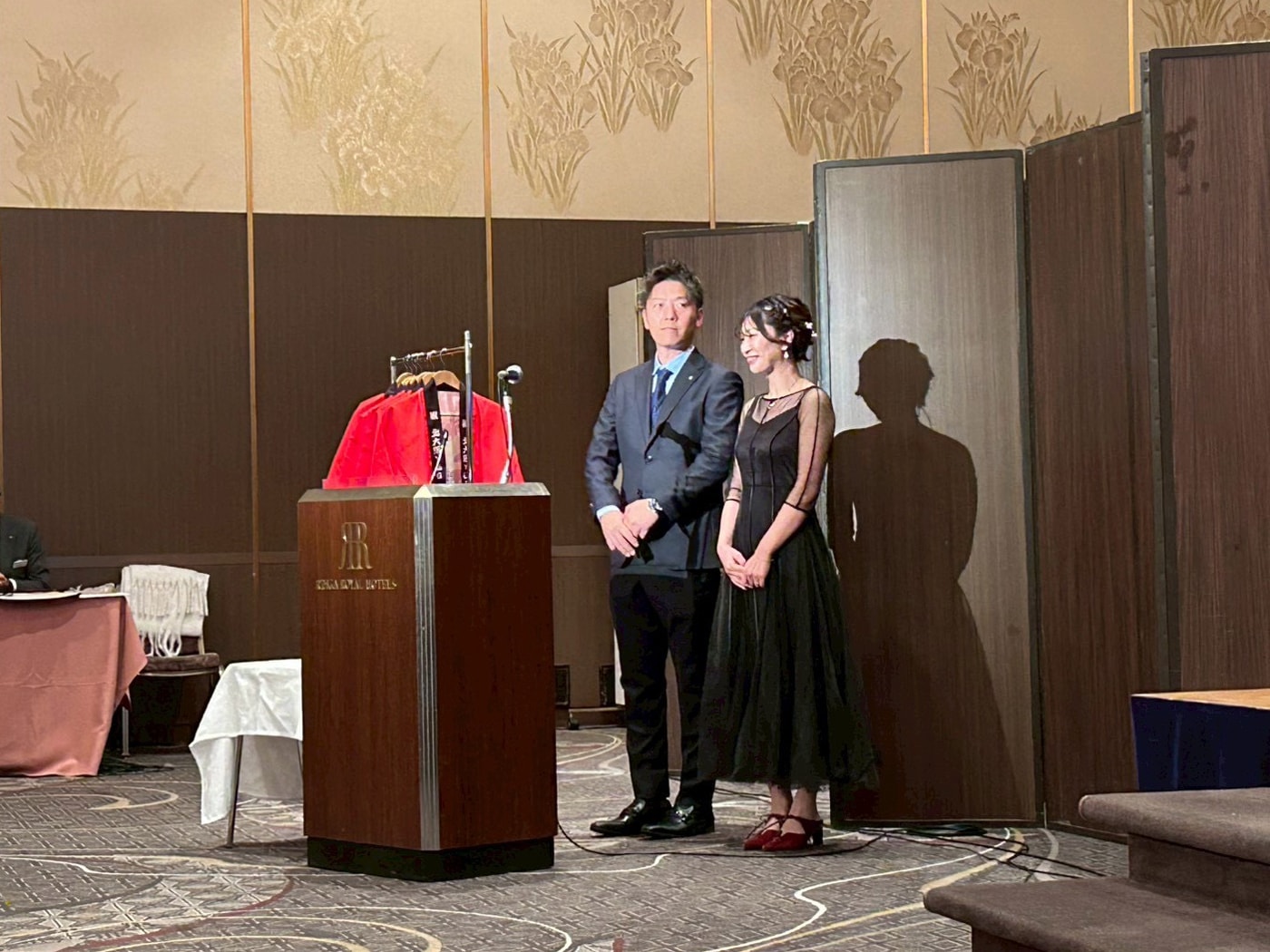 新春という言葉自体が季節感のある日本独自のものだということもあり、「和」をイメージできる演目として、オープニングアクターに能楽演舞を行い、例会中盤には居合切り演舞を行いました。